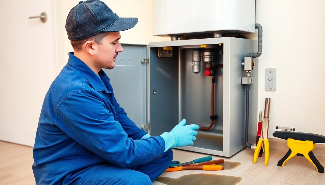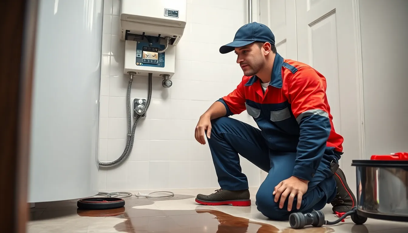 Immediately turn off power or gas to the system and shut the water supply. Avoid contact with water if you suspect a leak near electrical parts. Ensure the area is safe before waiting for the emergency plumber, and document any damage for insurance purposes.